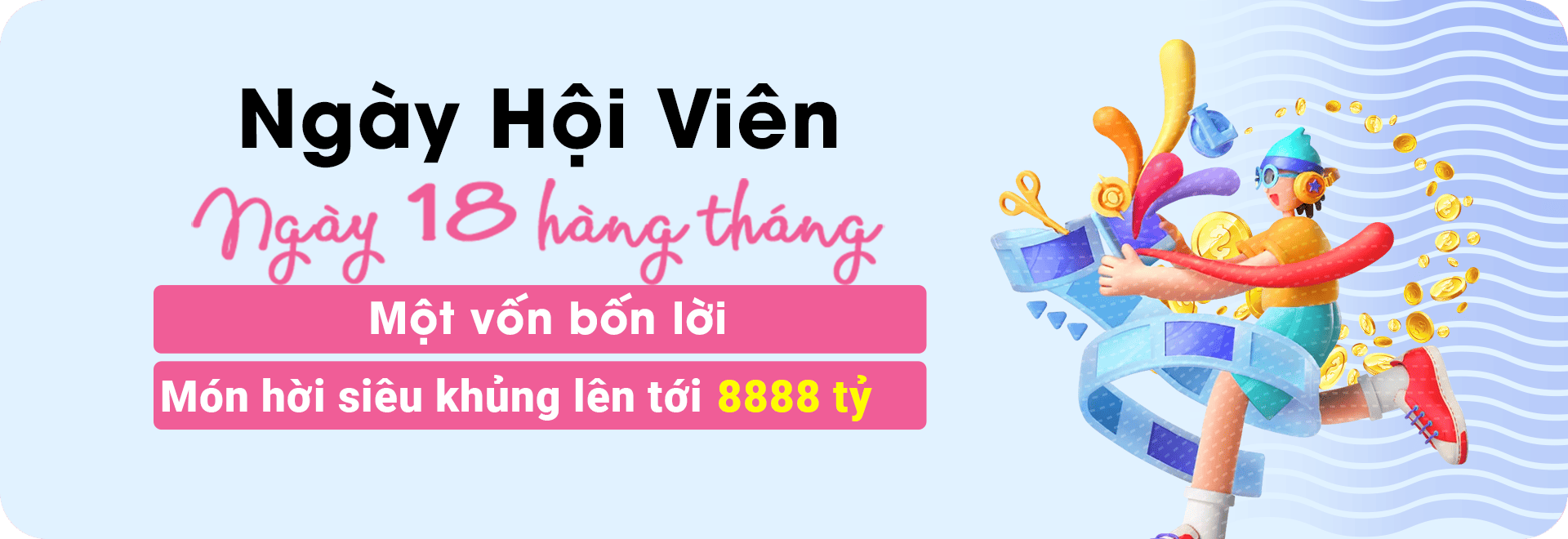 Siêu thưởng 8888 tỷ đồng từ nhà cái 55mmoo.com dành cho hội viên. Nhận vào ngày 18 hàng tháng. Người chơi chỉ cần đăng nhập sẽ nhận được món hời siêu hấp dẫn này.