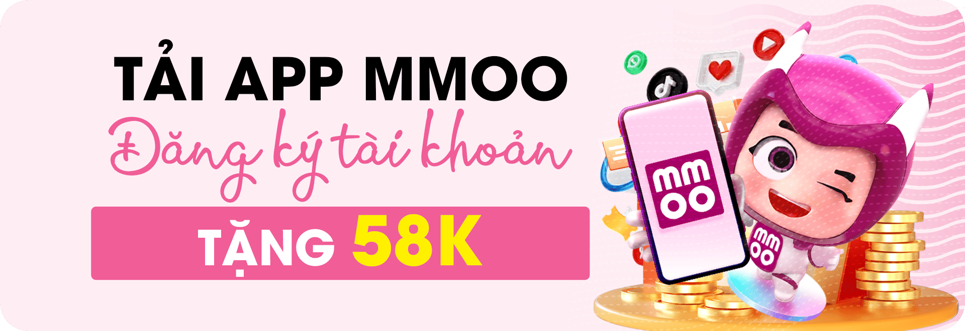 Người chơi tải ứng dụng chính thức và đăng ký hội viên thành công nhận ngay 58K từ nhà cái 55mmoo com. Lưu ý: Chỉ đăng ký 01 tài khoản với 01 địa chỉ IP. Tham gia nhận quà ngay.